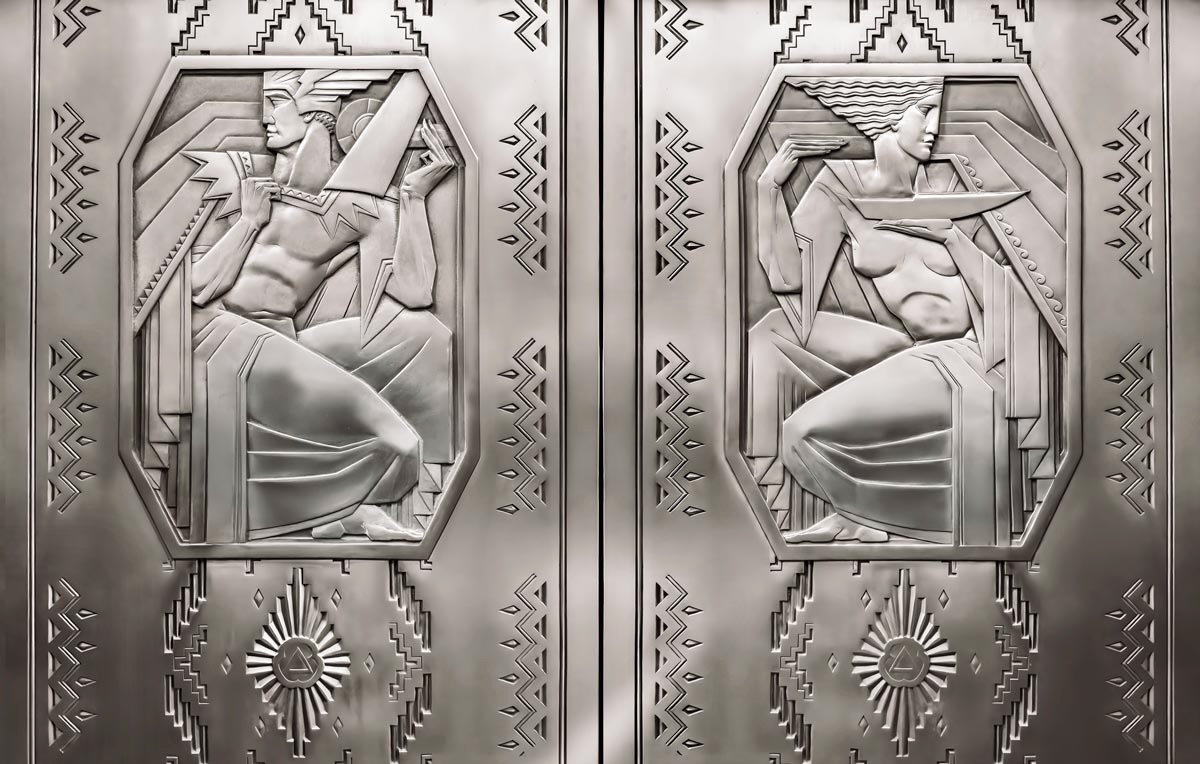 "Manhattan's commercial lobbies as complete artistic environments — elevator doors as allegorical sculpture, bronze grilles encoding symbolic programs, polychrome ceilings merging ancient and modern. Decorative cycles by Chambellan, Glinsky, and Bach.