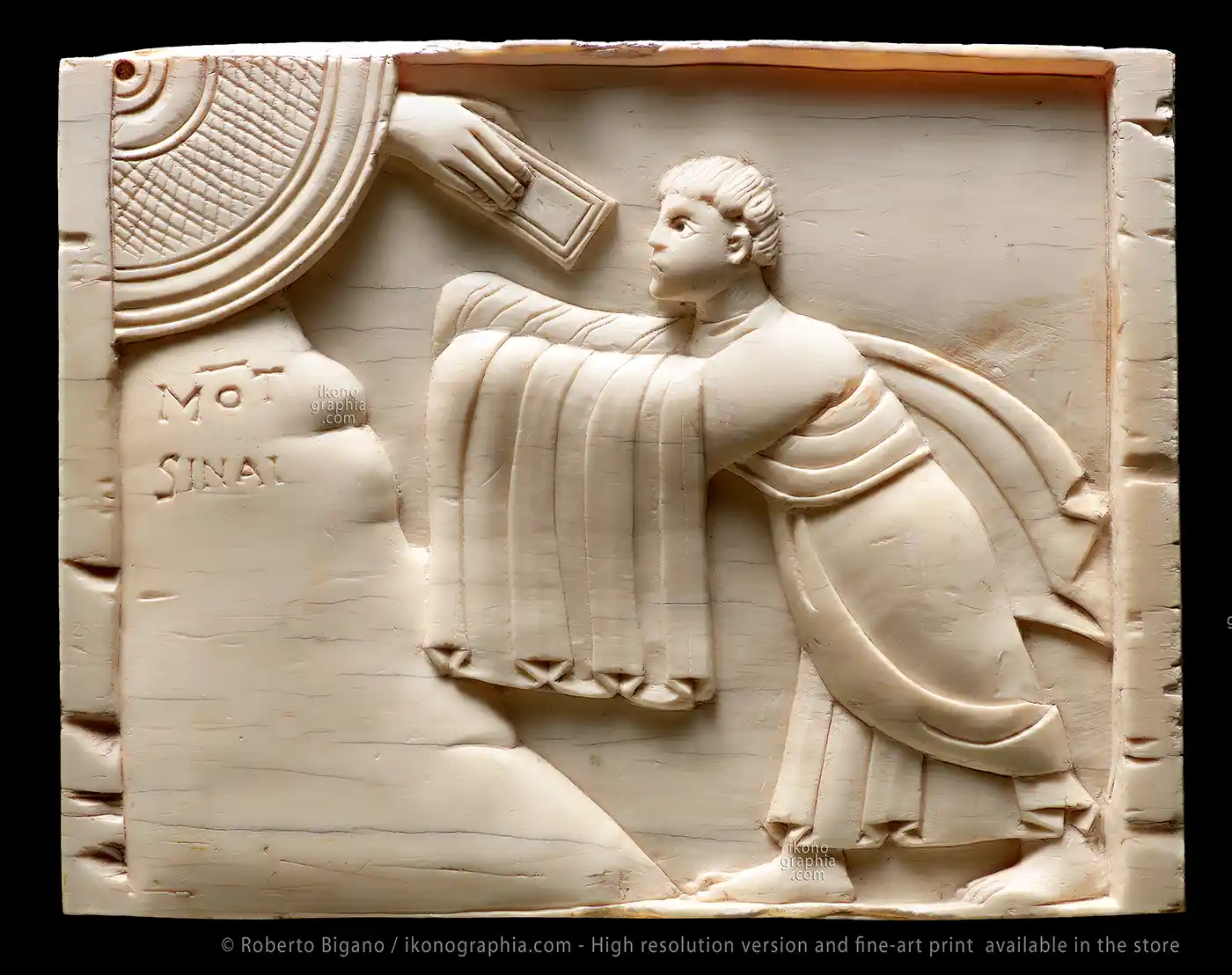 Moses at Mount Sinai. Old Testament Ivory Carving. Amalfi School, late 11th